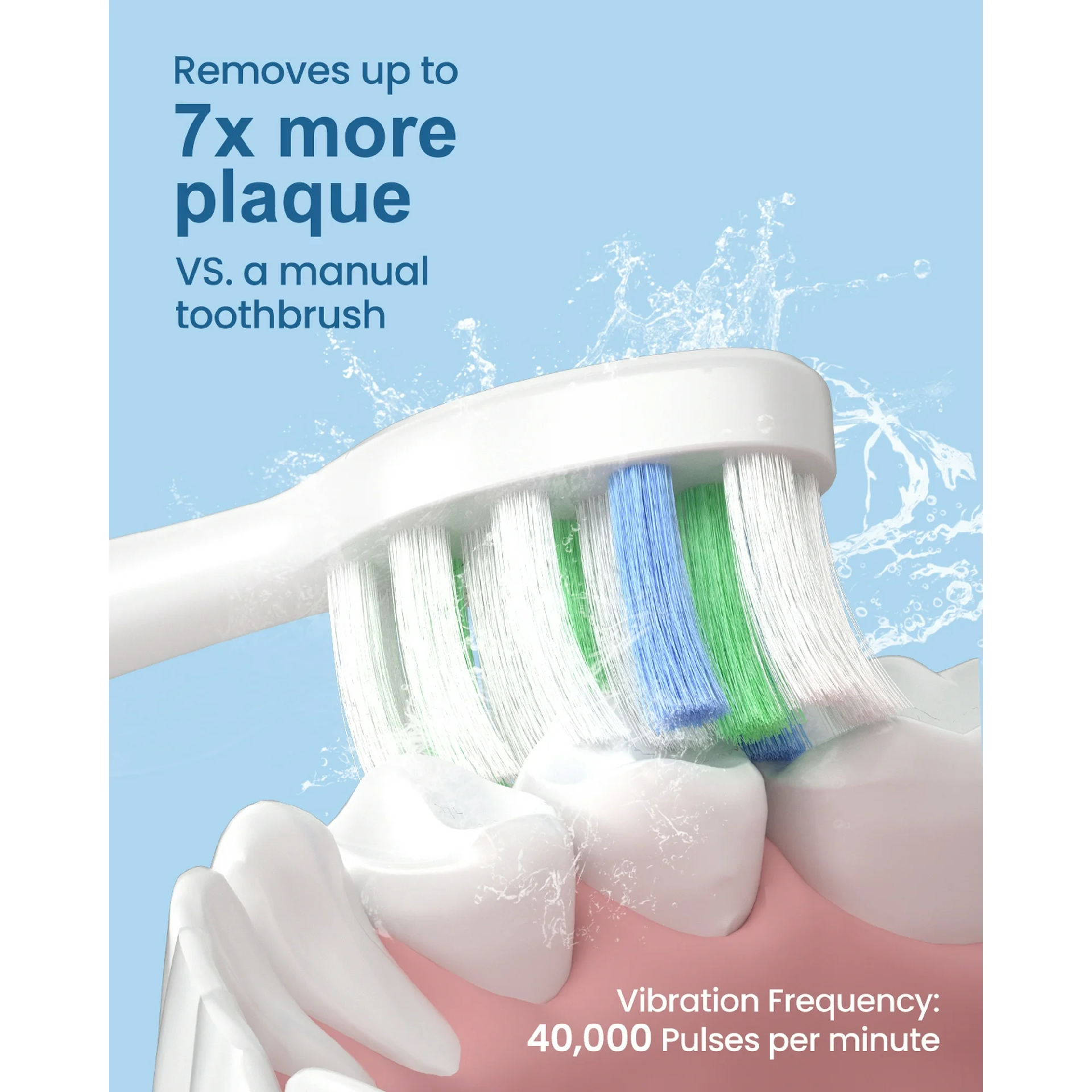 Powerful Sonic Cleaning Technology – Up to 40,000 VPM vibrations per minute deliver deep cleaning, remove stubborn plaque, and whiten teeth more effectively than a manual toothbrush.