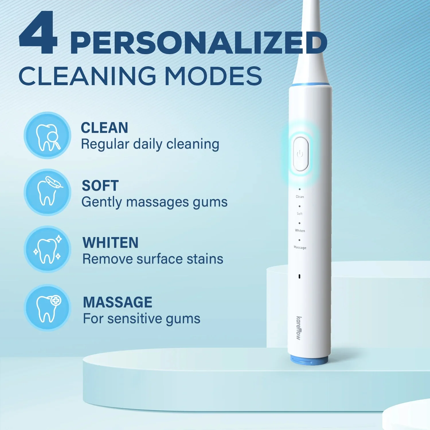 4 Professional Brushing Modes – Clean, White, Sensitive, and Massage settings meet different oral care needs, from powerful plaque control to gentle gum protection.