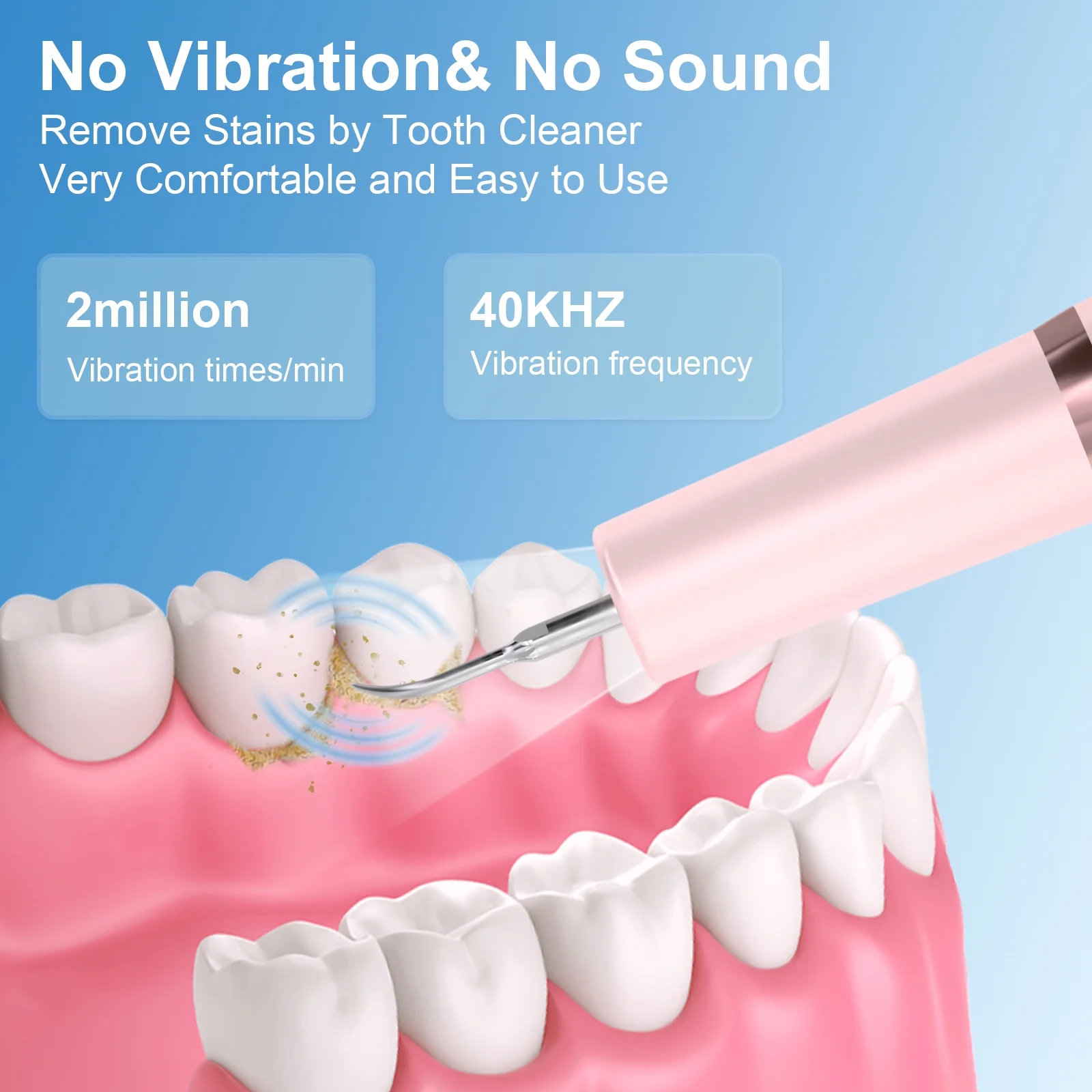 1.Our Dental Calculus Remover uses high-frequency ultrasonic vibrations to dislodge dental plaque, tartar, and calculus from the tooth surface. This technology targets hard-to-reach areas and breaks down stubborn buildup without damaging enamel, promoting a professional-level clean from the comfort of your home.